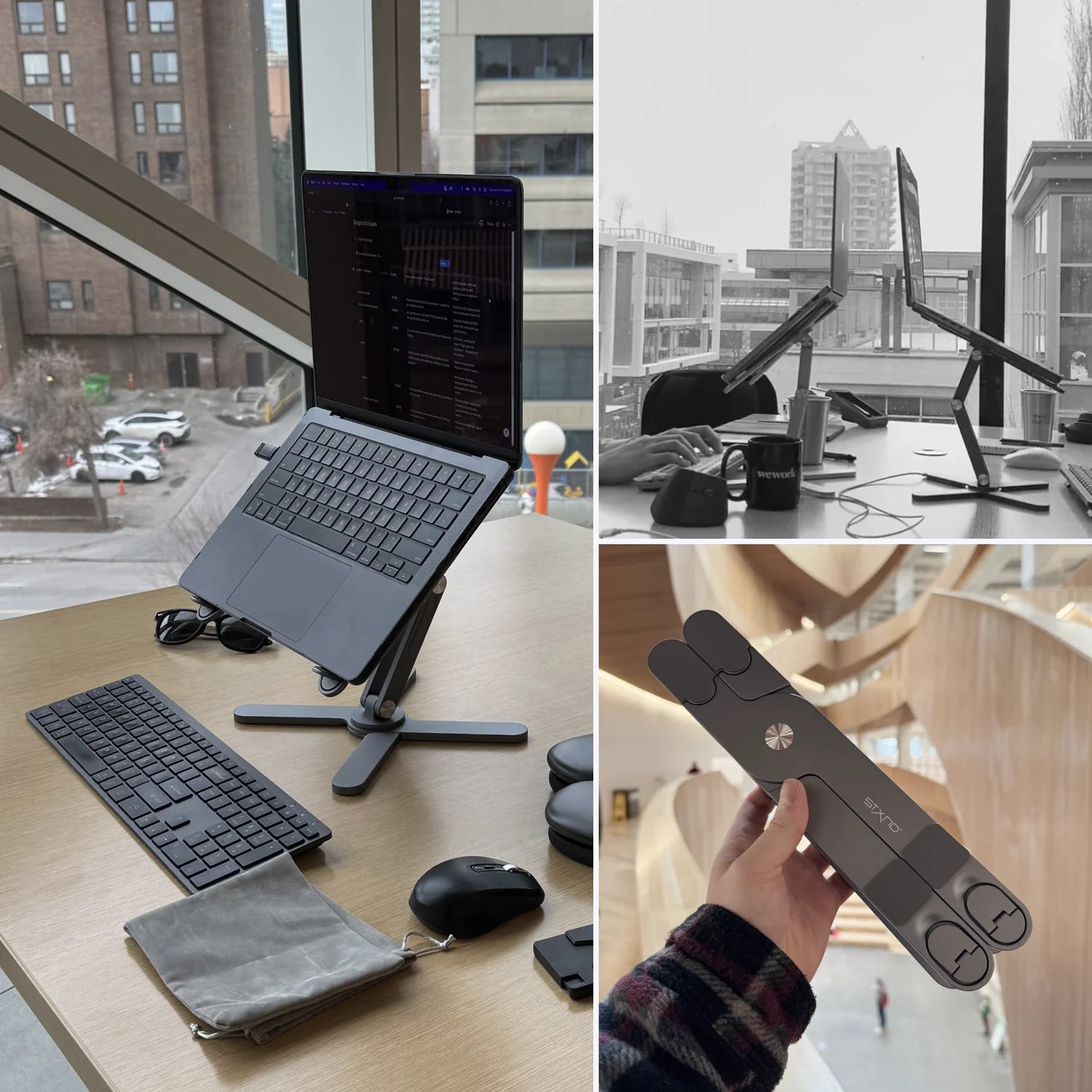 Most stands lock you into one position, forcing awkward laptop pickups during screen shares. Model-X's precision360°rotation lets you share your screen in one fluid motion. People comment on it every time. If you need to flex in a high-stakes environment, this feature immediately shows you're the cool kid.